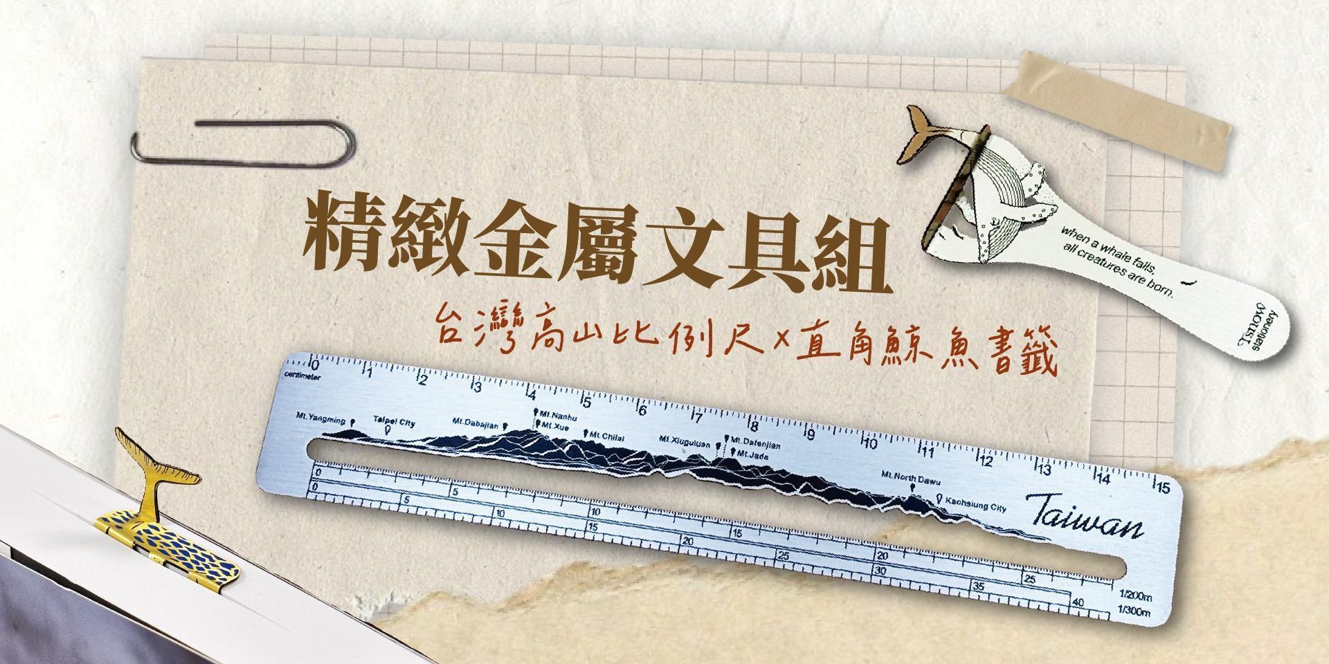 精緻金屬文具組 (高山比例尺+鯨魚書籤)