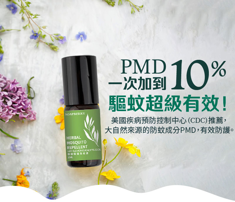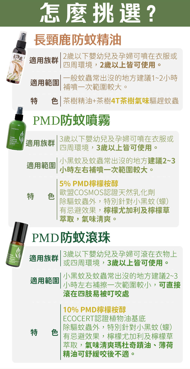 檸檬桉油來自於天然的檸檬尤加利(Eucalyptus citriodora)的葉子,其主要有效驅蚊成份為香茅醇與香茅醛,但緊能維持短暫效果。香茅醛中存在一種物質「PMD」,不具毒性且帶有微涼的觸感,獨特清新檸檬青草氣味,後經研究發現PMD具有天然、安全、不刺激皮膚、可持續長時間有效驅蚊。