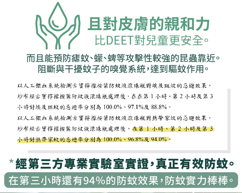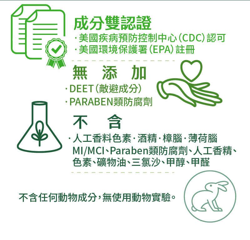無添加DEET(敵避成分)及無添加PARABEN類防腐劑